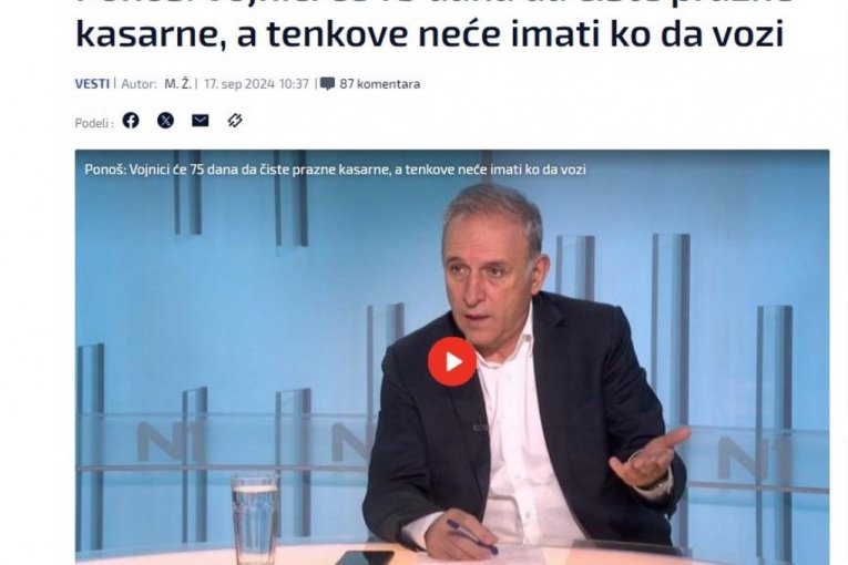 - Ako bude sa 75 dana, stvari su loše, a biće još gore, oni će da čiste prazne kasarne, a neće imati ko da vozi tenkove - ocenio je čovek tokom čijeg je mandata vojska devastirana.