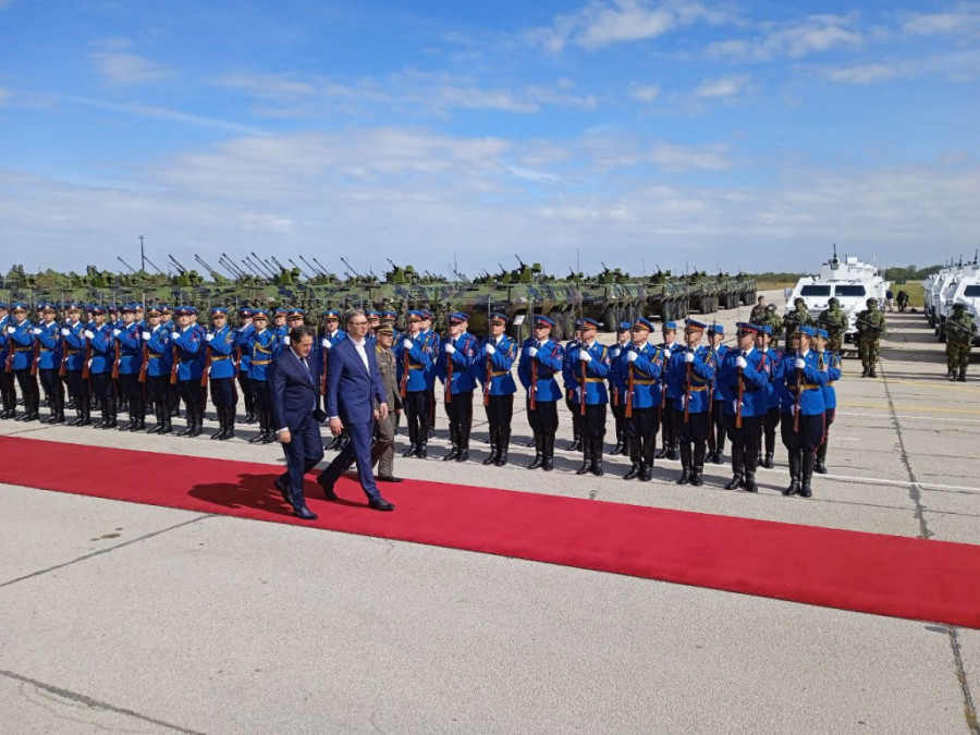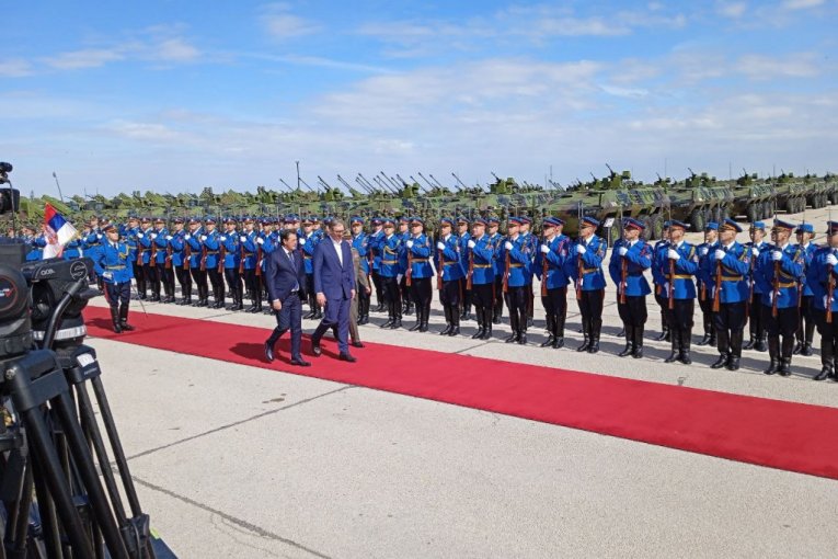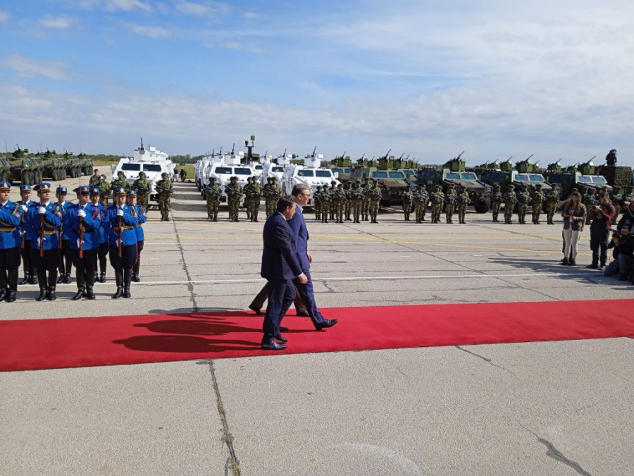 Predsednik Aleksandar Vučić stigao je na aerodrom, gde je ispred počasnog stroja gardista intonirana himna Bože pravde, nakon čega je primio raport.