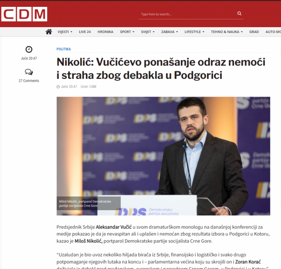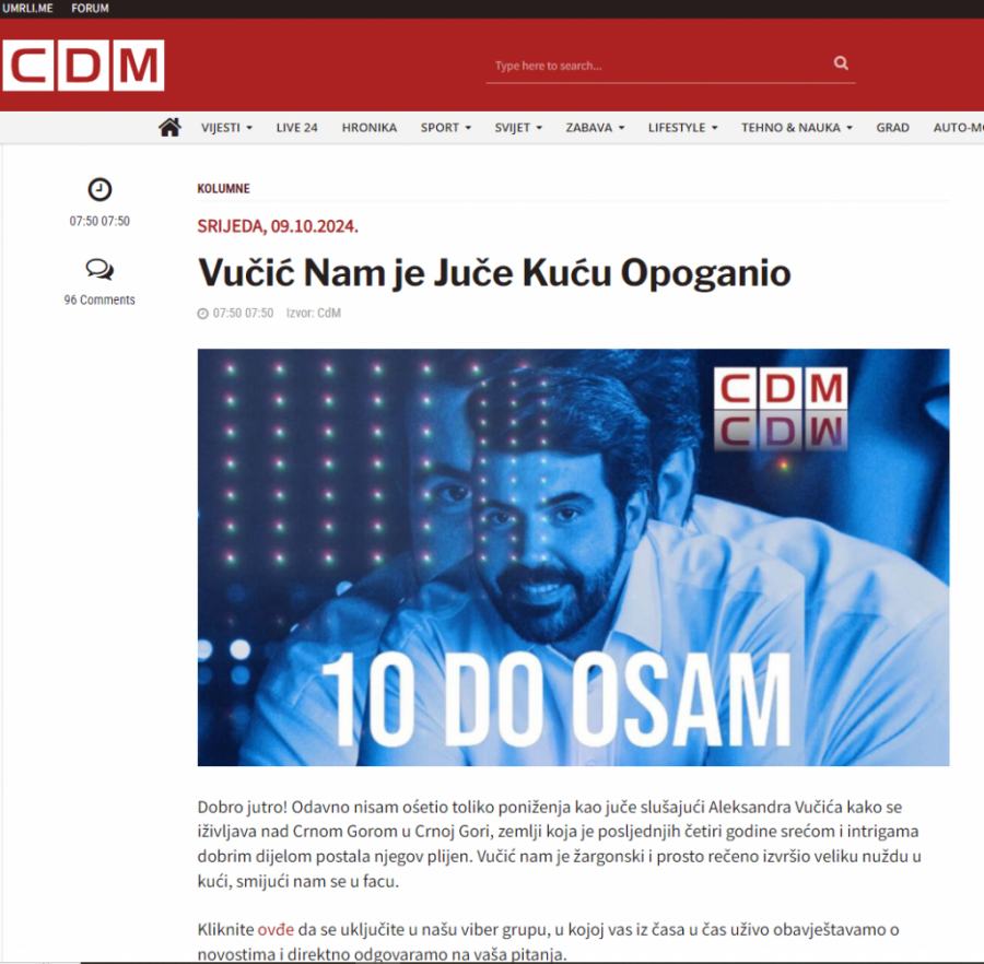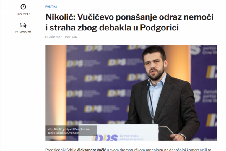 Srpski telegraf je za samo deset minuta guglanja pronašao pet tekstova na portalima iz Crne Gore, BiH i, nažalost, Srbije, u kojima su brutalno napadnuti Vučić i naša zemlja. Bilo je tu svega, od "Vučić nam je kuću opoganio" preko "Vučićevo ponašanje odraz nemoći i straha zbog debakla u Podgorici, njegova agresija prema Crnoj Gori tek će doći na naplatu" do "Uticaj Srbije, Rusije i Kine preti demokratiji u Crnoj Gori".
