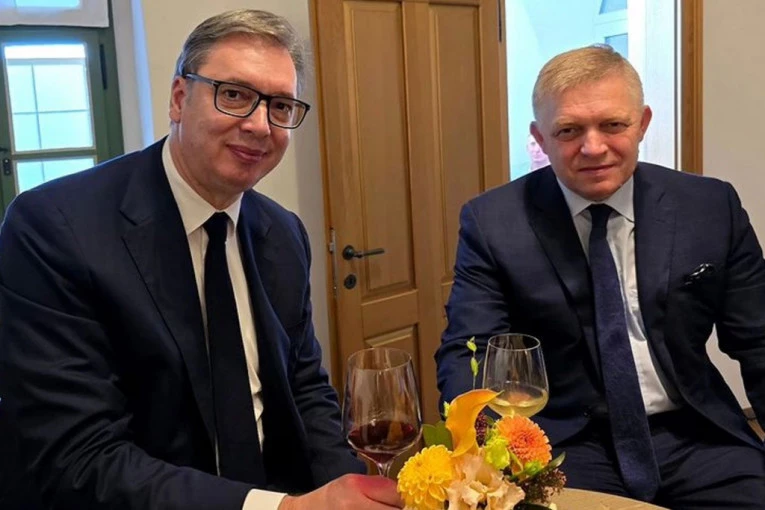 - Srećan što sam imao priliku da pogačice sa čvarcima i čašu dobrog vina podelim sa velikim prijateljem Srbije Robertom Ficom. Želim mu dobro zdravlje i sve najbolje slovačkom narodu i njihovoj državi - napisao je Vučić u opisu fotografje.