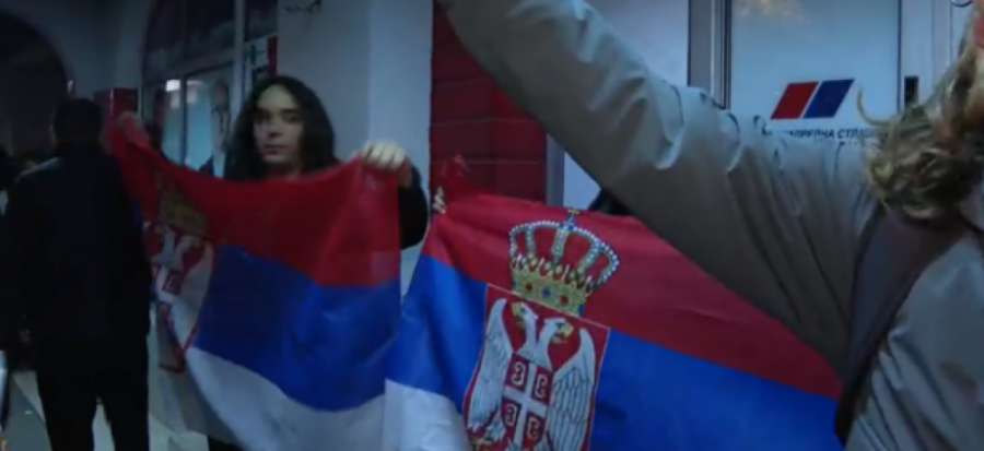 Na snimku se vidi i grupa ljudi i čuje se poziv okupljenima da “ne pipaju zastave”. U kadru na 00:32 vide se mladi ljudi koji u rukama drže zastave Srbije.