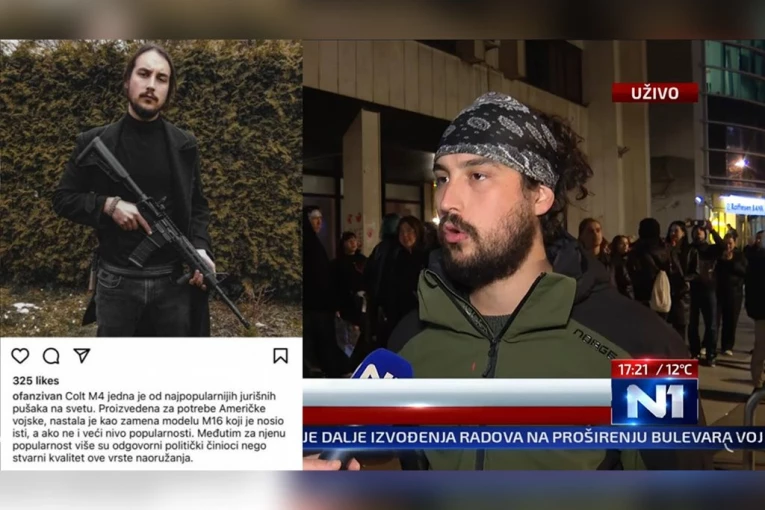 Jedan od kolovođa današnjih protesta opozicije u Novom Sadu je i Ivan Bjelić, koji je poznat po tome što sa jurišnim puškama pozira na Instagramu.