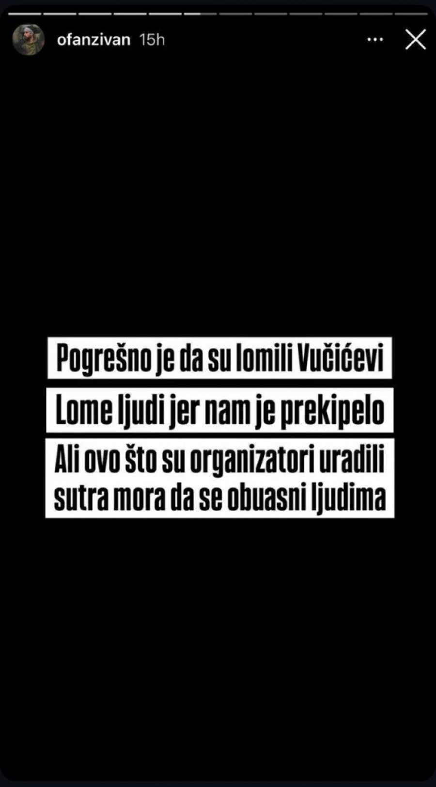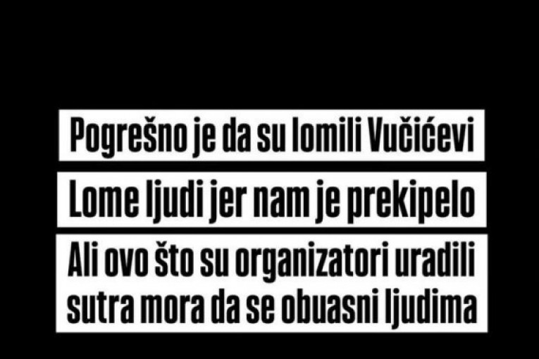 "Pogrešno je da su lomili Vučićevi. Lome ljudi jer nam je prekipelo. Ali ovo što su organizatori uradili sutra mora da se objasni ljudima".
