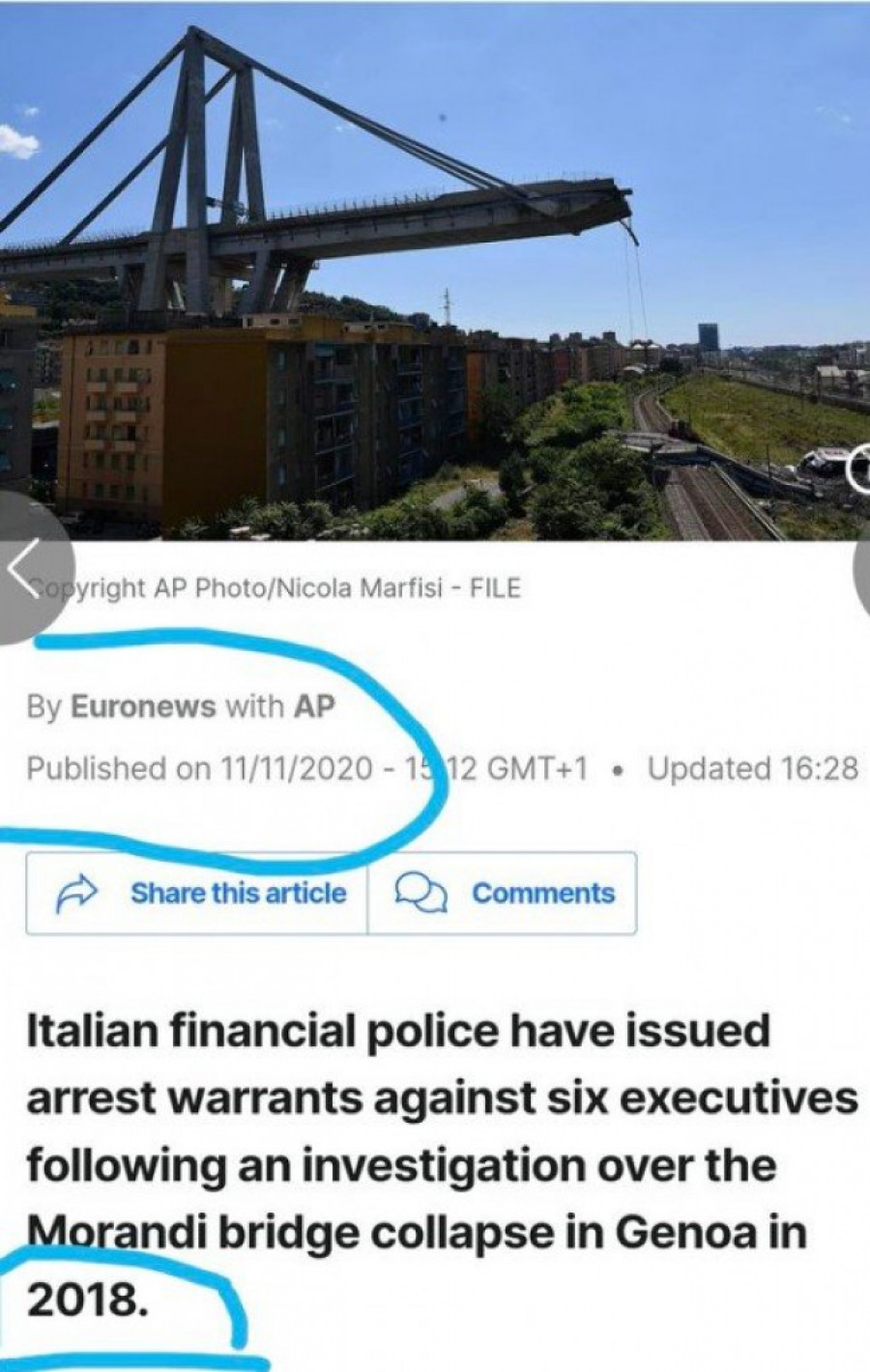 On je istakao da je italijanskom tužilaštvu su bile potrebne 2 godine i 3 meseca da se završi istraga i uhapse prvi odgovorni za pad mosta u Djenovi.