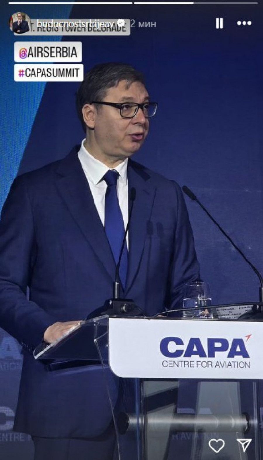 - CAPA već više od tri decenije predvodi ovaj put. Nama je posebno drago što se ovaj događaj odvija u Srbiji, zemlji koja je zabeležila epohalni procvat u aviosaobraćaju. Er Srbija je postala motor celokupne ekonomije i međunarodnog imidža naše zemlje. Er Srbija je postala vizija. Imamo najmlađu flotu u regionu, i prevezeno je 4 miliona putnika ove godine - naglasio je predsednik.