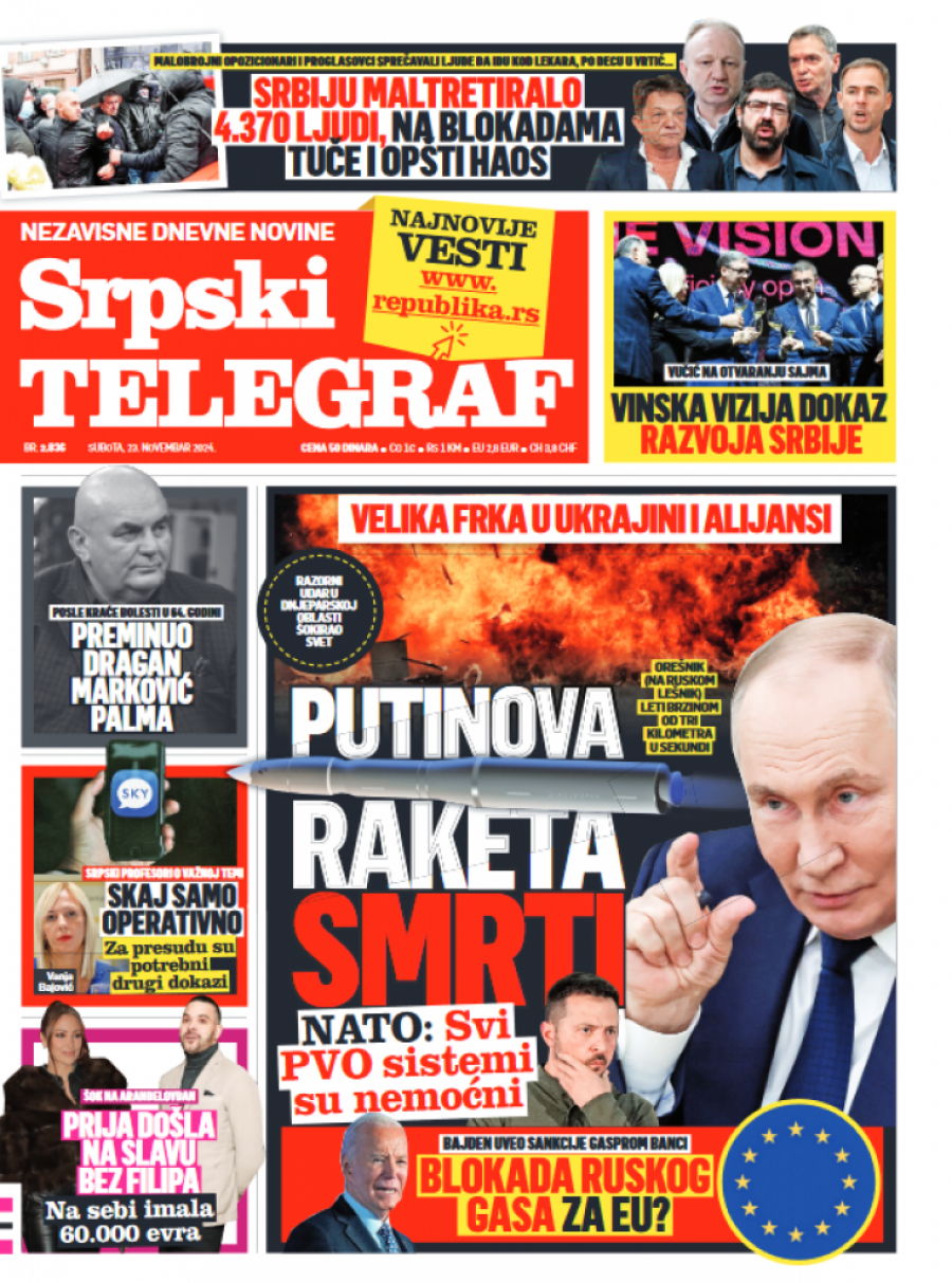 Srpski telegraf u izdanju za subotu 23. novembar donosi pregršt važnih i interesantnih priča!