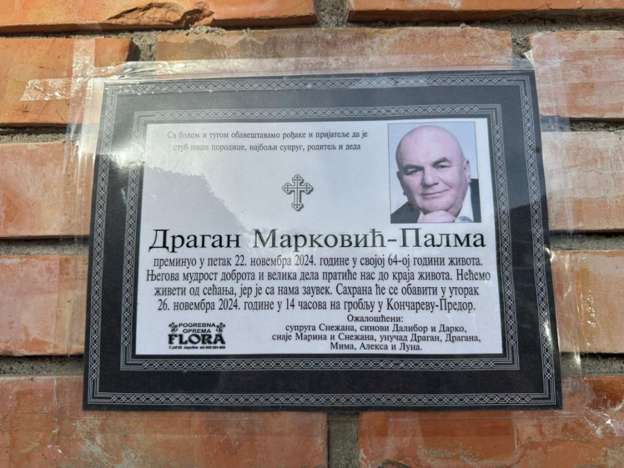 Danas je na mesnom groblju u Končarevu sahranjen lider Jedinstvene Srbije i poslanik u Skupštini Srbije Dragan Marković Palma.
