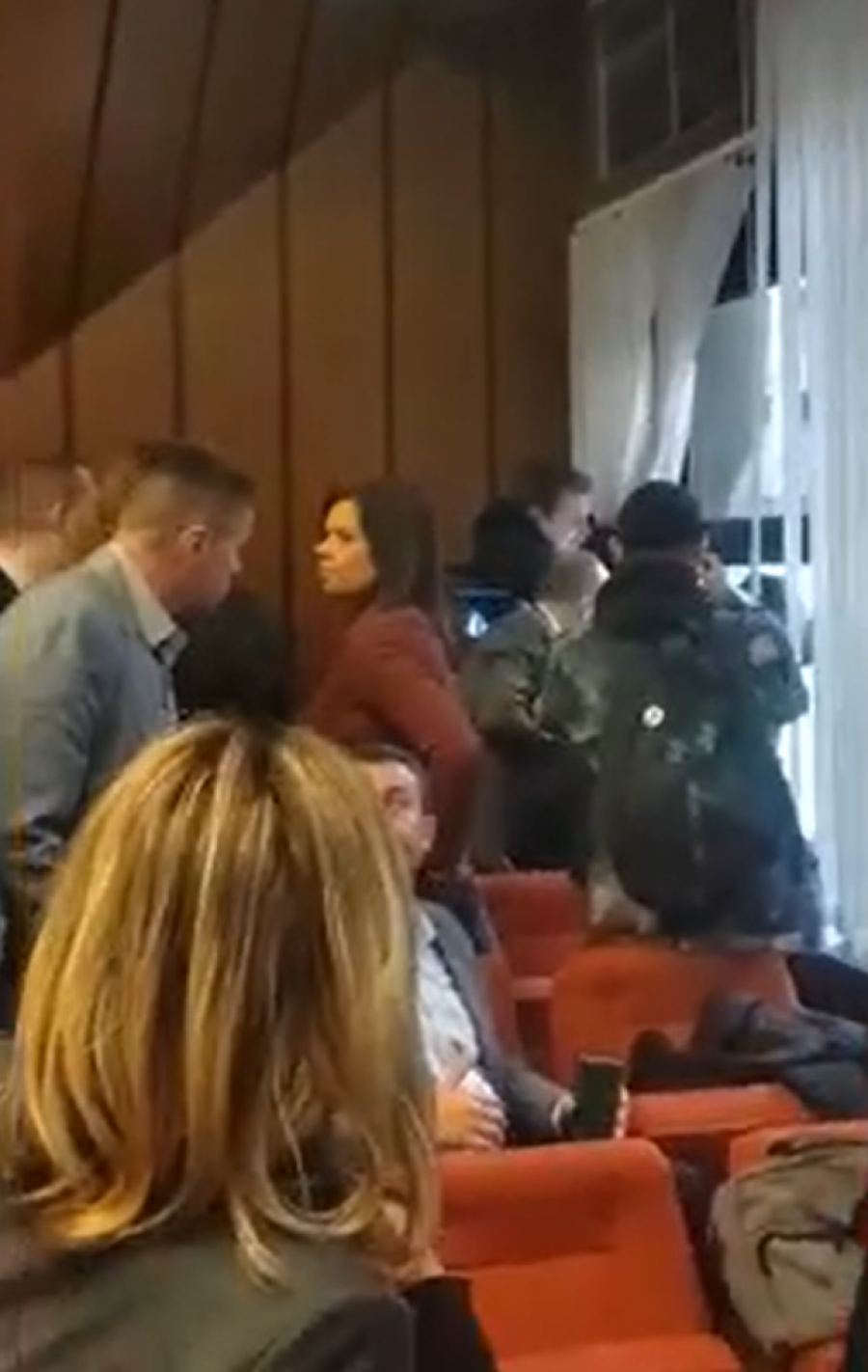Isped Skupštine grada Novog Sada okupljaju se ljudi koji pokušavaju da upadnu u Skupštinu, a na njihovom čelu su Aleksandar Jovanović Ćuta, Branko Miljuš, kao i dopisnica N1 koja učestvuje na svakom nasilnom protestu.