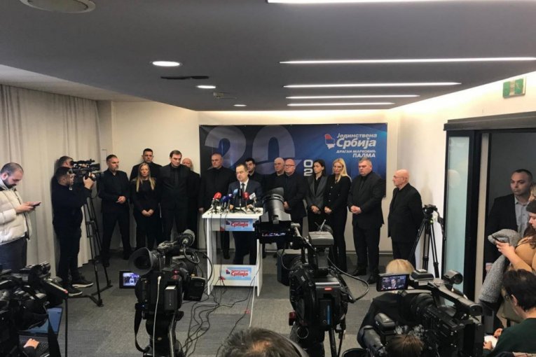 U prostorijama Jedinstvene Srbije u Beogradu održana je konferencija za novinare na kojoj su govorili zamenik predsednika Jedinstvene Srbije Života Starčević i predsednik SPS Ivica Dačić, a prisustvovali su, između ostalih i potpredsednik Jedinstvene Srbije i sin Dragana Markovića Palme Dalibor Marković i sin Ivice Dačića Luka Dačić.
