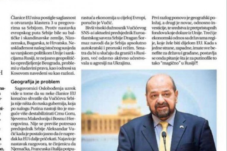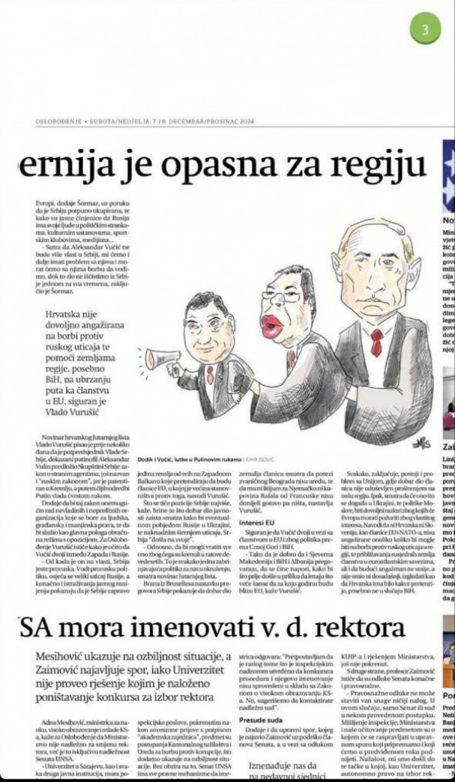 Sarajevski dnevni list "Oslobođenje" ne prestaje sa napadima na predsednika Srbije Aleksandra Vučića, nazivajući ga "Putinovom lutkom" i optužuju srpsku vlast za problem Kosova i Metohije.