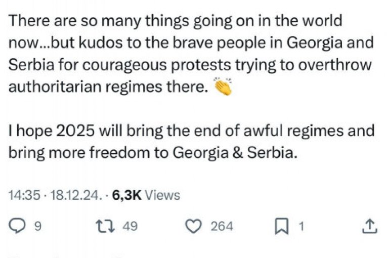 Stradner, koja je i specijalna dopisnica Kijev posta iz Amerike, podelila je Maskovu objavu i uz nju na društvenoj mreži Iks napisala da je ta izjava "opasna“, ali i da pokazuje šta Mask želi da uradi u SAD.