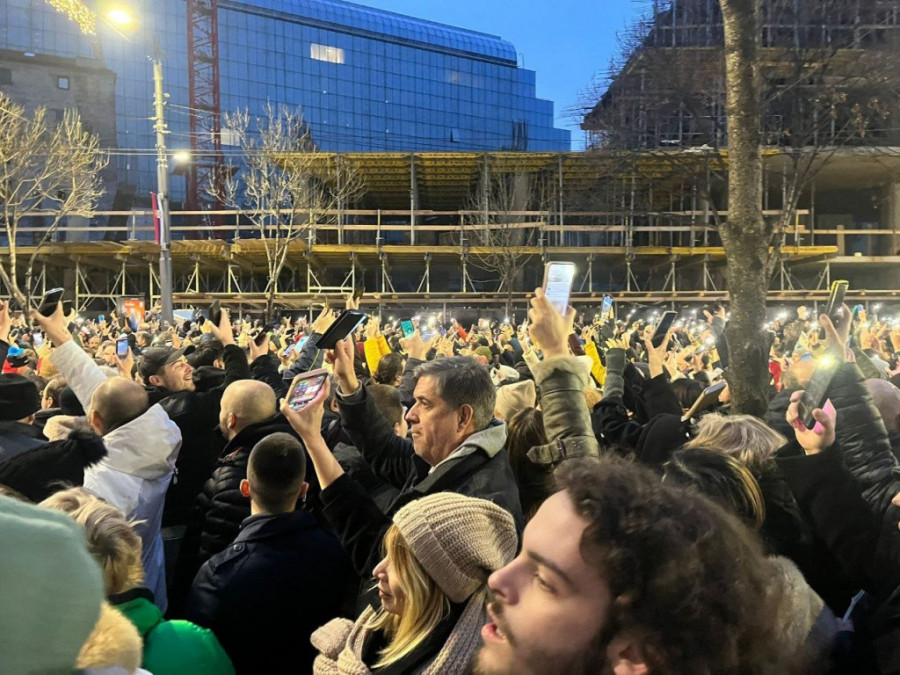 U masi okupljenoj na trgu Slavija, čini se, ponajmanje ima studenata, a u masi smo prepoznali i Đilasovu armiju koju predvode "studenti" Radomir Lazović i Branko Miljuš.