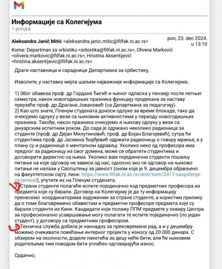 Ovo je zvanični mejl sa kolegijuma.