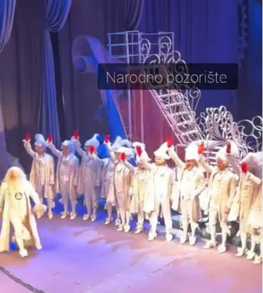 Srpski glumci, predvođeni Draganom Bjelogrlićem, samoinicijativno ili pod pretnjama, poslednjih nekoliko dana predstave završavaju pokazujući antisemitske i fašističke simbole koje su vlade širom Evrope osudile, a one koji su ih pokazivali, su procesuirali.