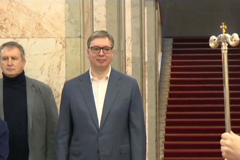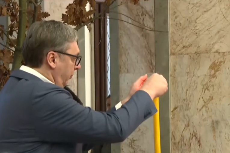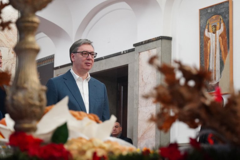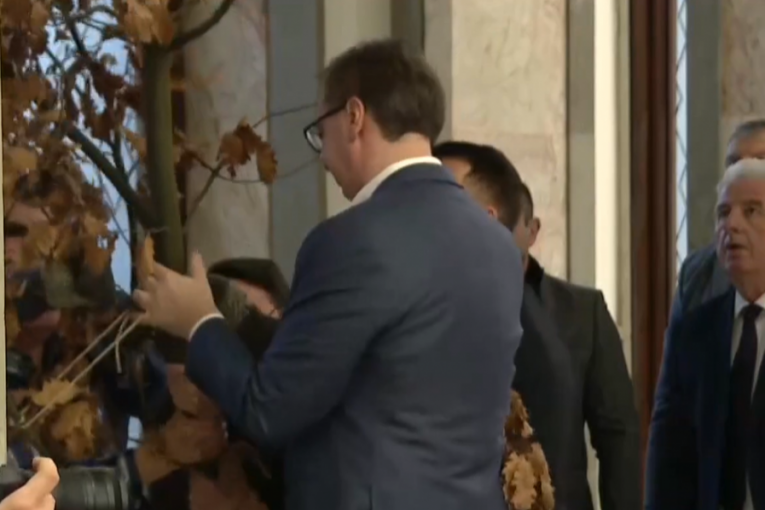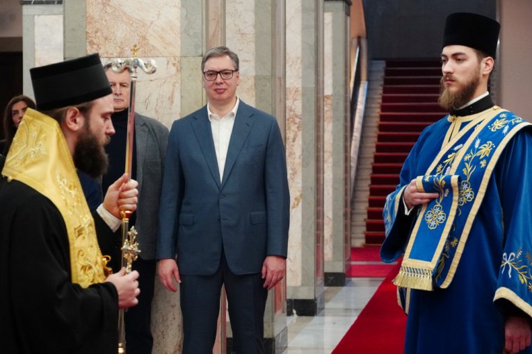 Predsednik Srbije Aleksandar Vučić danas je, na Badnji dan, uneo badnjak u zgradu Predsedništva na Andrićevom vencu.