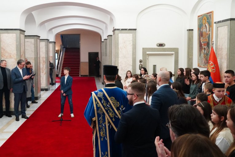 - Danas je dan pomirenja i blagosti, sve ljude u našoj zemlji molim da baš sa takvim osećanjima u srcu se odnose prema svojim bližnjima, i prema svima drugima. Sutra je najradnosniji praznik, i uvek sam srećan kada mogu sa našom decom da provedem to vreme. Verujem da ste vi koji ste došli iz Rumunije, i vi iz raznih delova Crne Gore, da ste mogli mnogo toga da vidite u svom Beogradu. Beograd je vaš. Ja znam kada ih pitam uvek vole sve da obiđu, ali najviše Hram Svetog Save - rekao je Vučić.