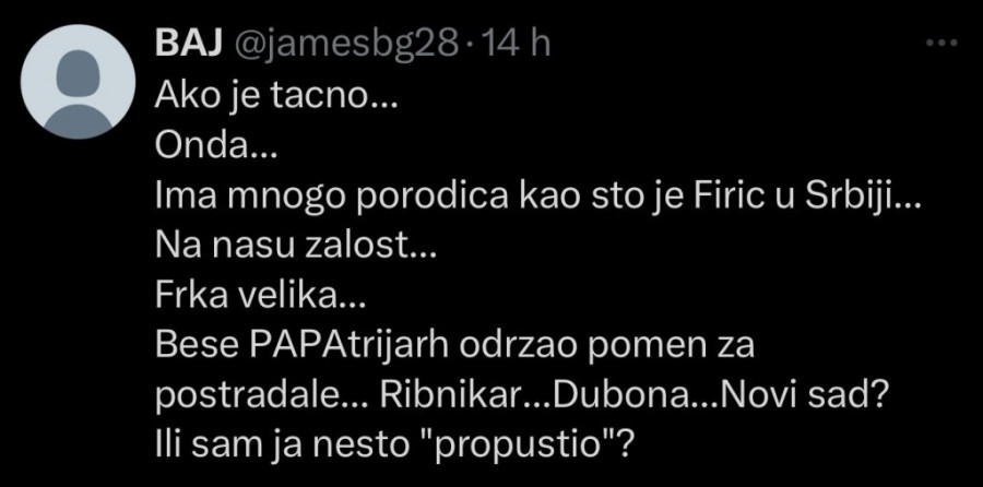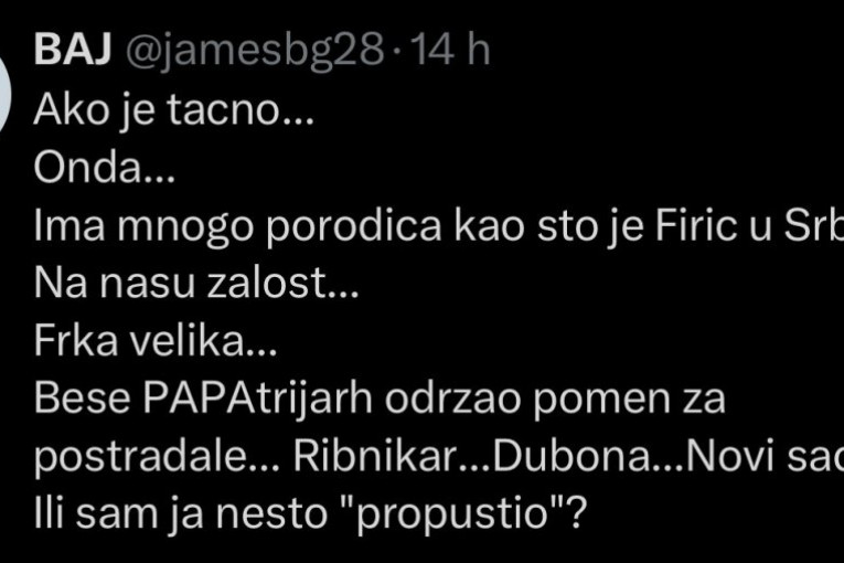 U nekontrolisanoj mržnji su konstatovali da u Srbiji "ima mnogo porodica kao što je Firić". Uz sve to, patrijarha su lažno optužili da nije održao pomen za postradale u "Ribnikaru", Duboni, Malom Orašju i Novom Sadu.