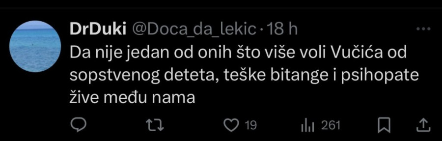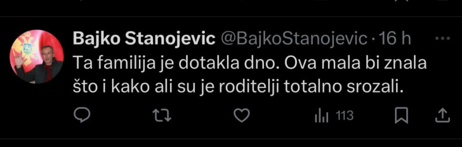 - "Da nije jedan od onih što više voli Vučića od sopstvenog deteta, teške bitange i psihopate žive među nama." "Srećom, dete nije na tatu." "Ta familija je dotakla dno." "Ova mala bi znala šta i kako, ali su je roditelji totalno srozali."