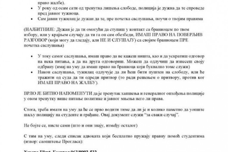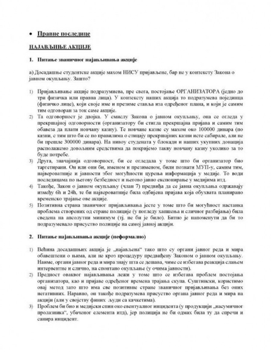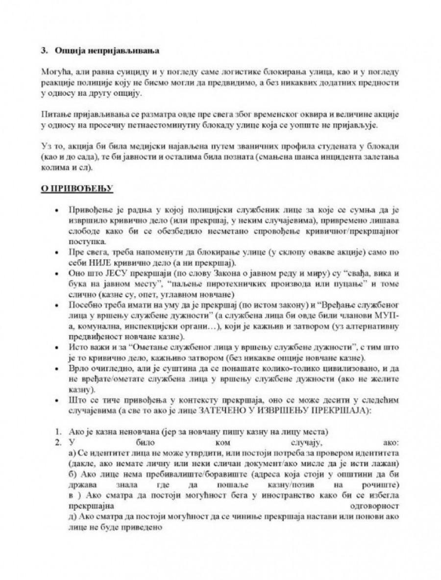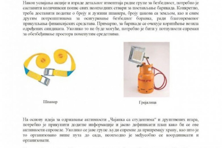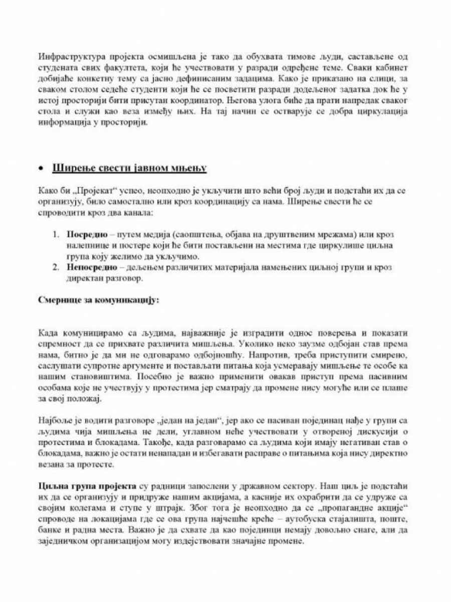 Plan je, inače, dospeo u javnost zahvaljujući jednom od učesnika plenuma na kom je predstavljen ovaj plan koji je odlučio da tako obavesti o stvarnoj logistici koja stoji iza tzv. studentskih akcija.