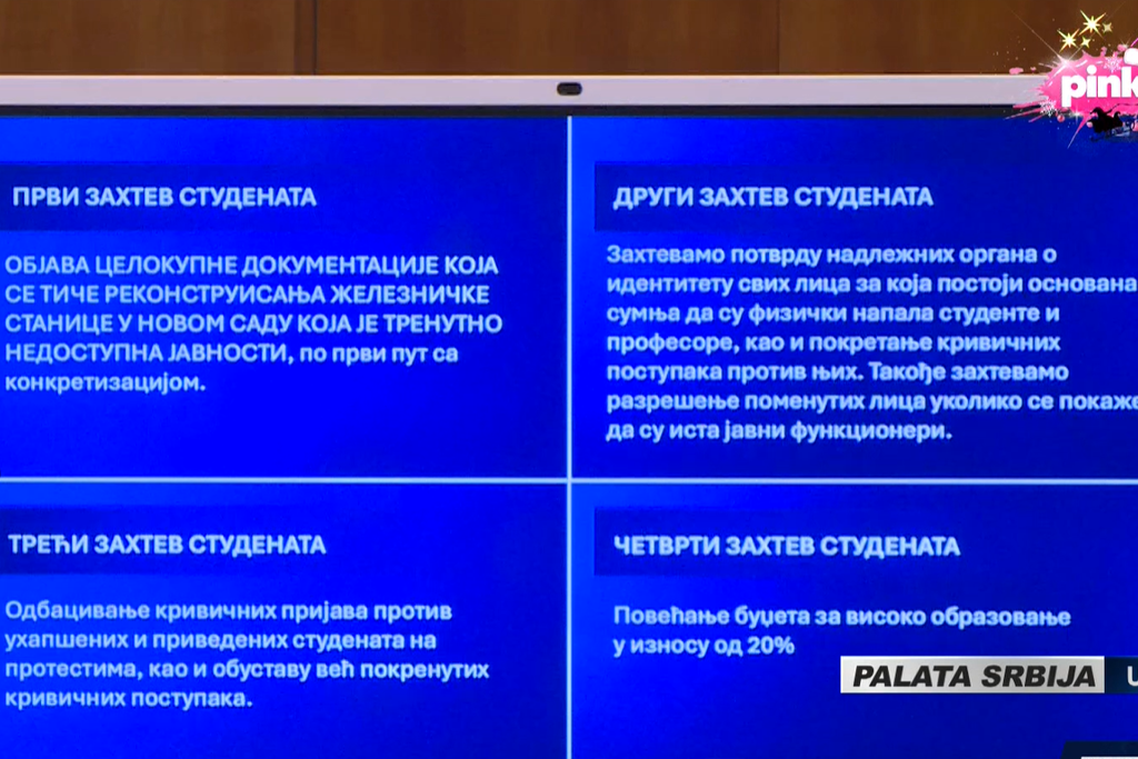 - Drugi zahtev studenata: Javna tužilaštva po hitnom postupku pokrenula su postupke protiv 37 lica. U te postupke spada sve ono što je javnosti bilo poznato i za šta su podnošene krivične prijave. Što se tiče javnih funkcionera, to je rešeno.