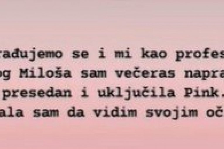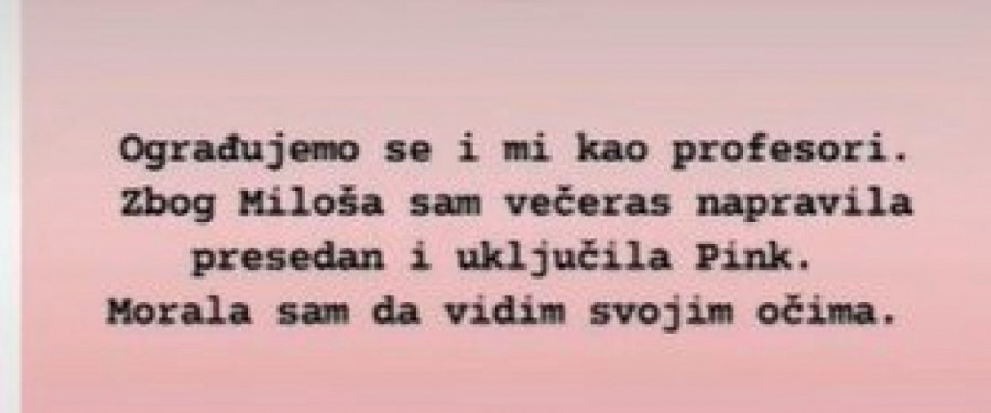 - Ograđujemo se i mi kao profesori. Zbog Miloša sam večeras napravila presedan i uključila Pink. Morala sam da vidim svojim očima - napisala je i konstatovala da je student na to bio primoran: