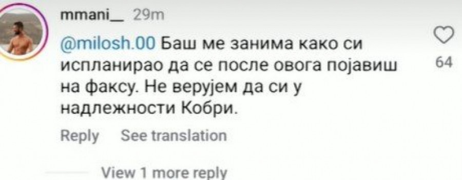 Ovo je strašno... Takve pretnje od kolega i ovakvi politički komentari koji targetiraju Miloša zbog različitog političkog stava od njihovog. I to je njihova demokratija? Pa, ono za šta optužuju vlast, to zapravo rade oni. Neverovatno...
