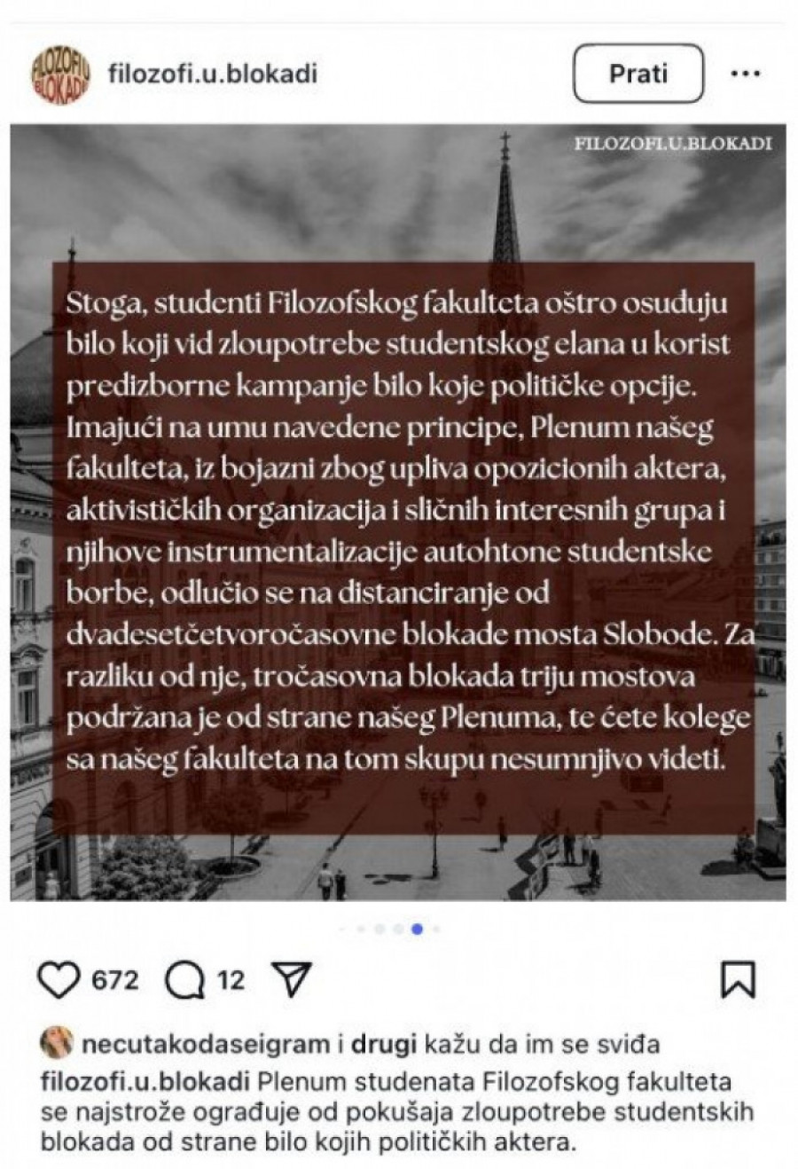 Objava je napravljena na instagram nalogu Filozofi u blokadi.