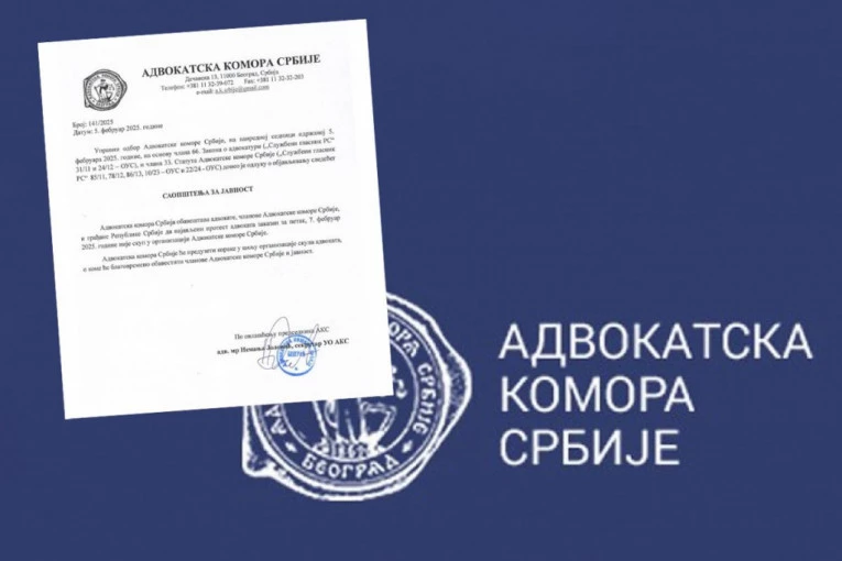 VAŽNO SAOPŠTENJE ADVOKATSKE KOMORE SRBIJE: "Najavljeni protest za 7. februar ne organizuje AKS"!