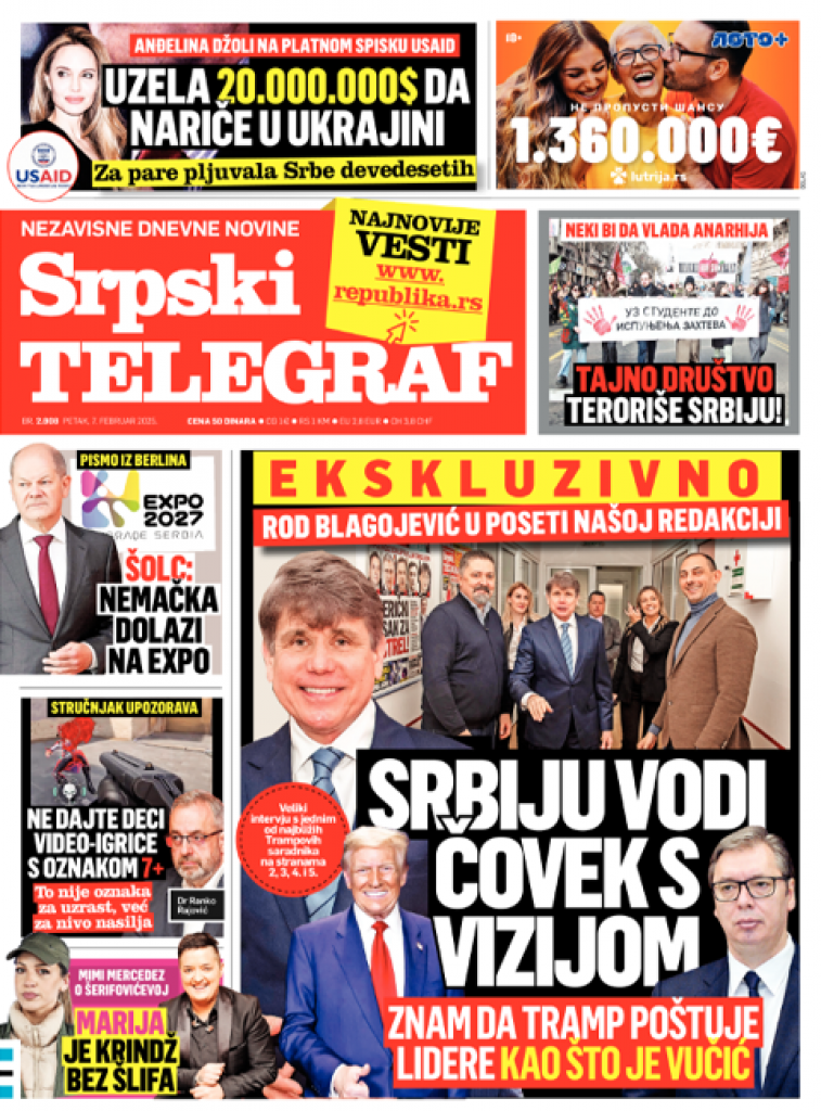 Srpski telegraf u izdanju za petak 7. februar 2025. godine donosi pregršt novih i zanimljivih priča!