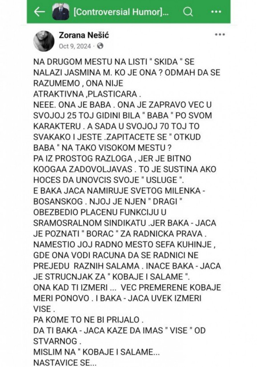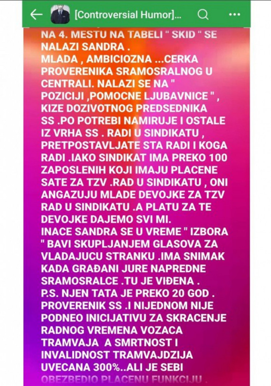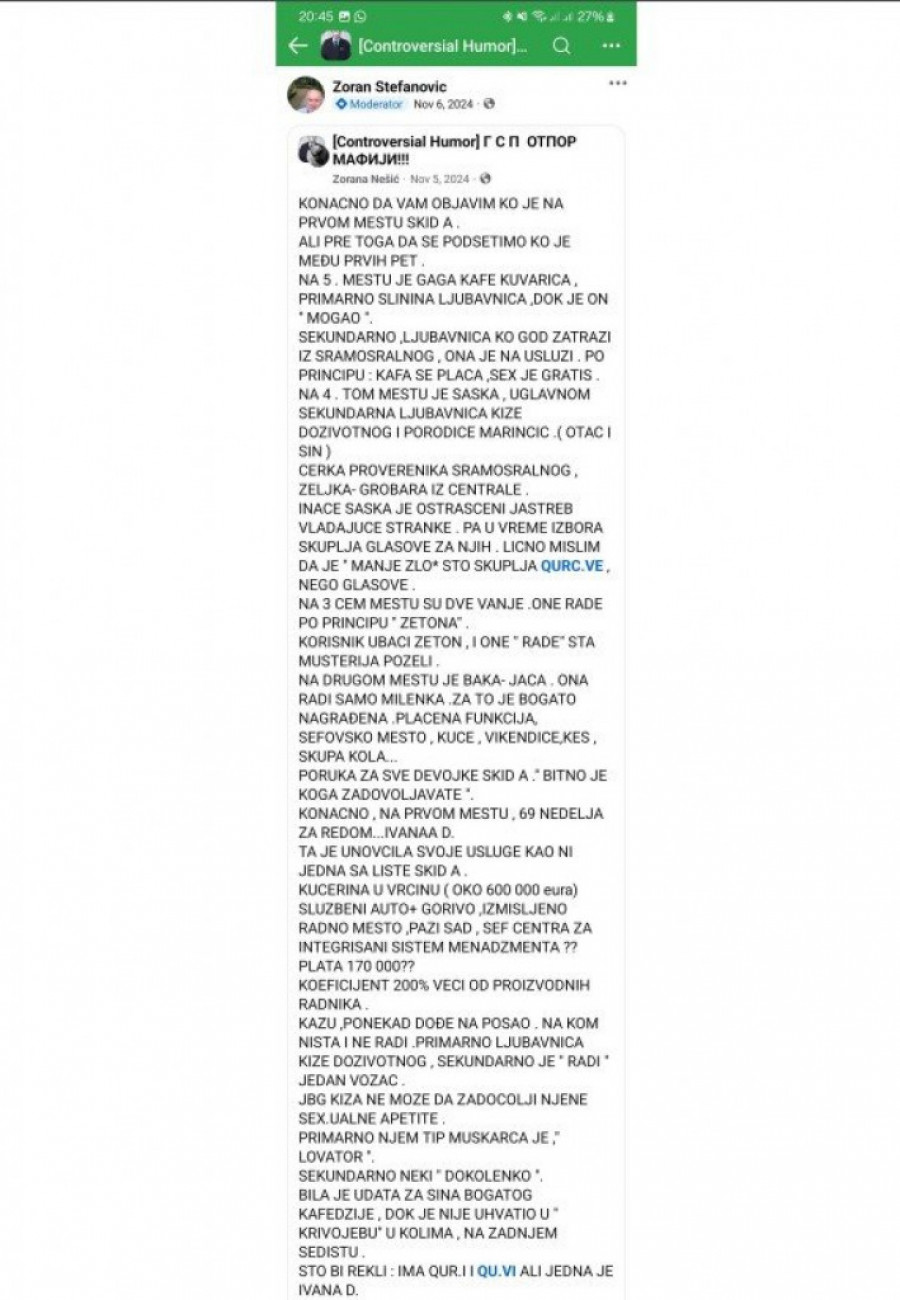 Međutim, ono što smatramo posebno zabrinjavajućim jeste činjenica da su pojedine koleginice bile izložene neprimerenim i uvredljivim komentarima sa seksualnim konotacijama. Stefanović nije obrisao nijedan od tih komentara, čime je doprineo dodatnoj uznemirenosti zaposlenih žena koje su pogođene ovim napadima.