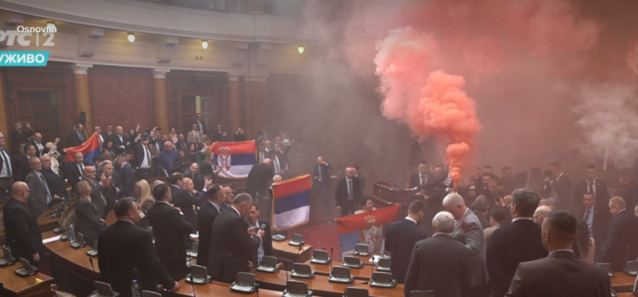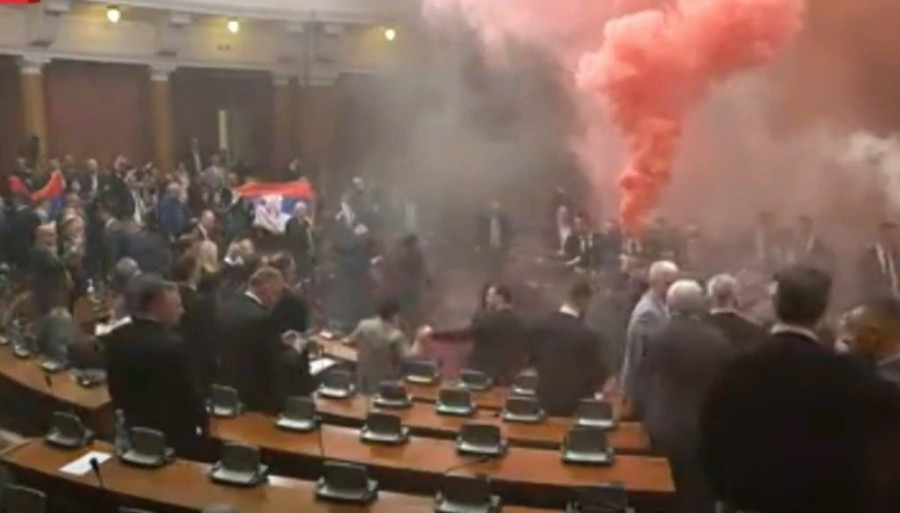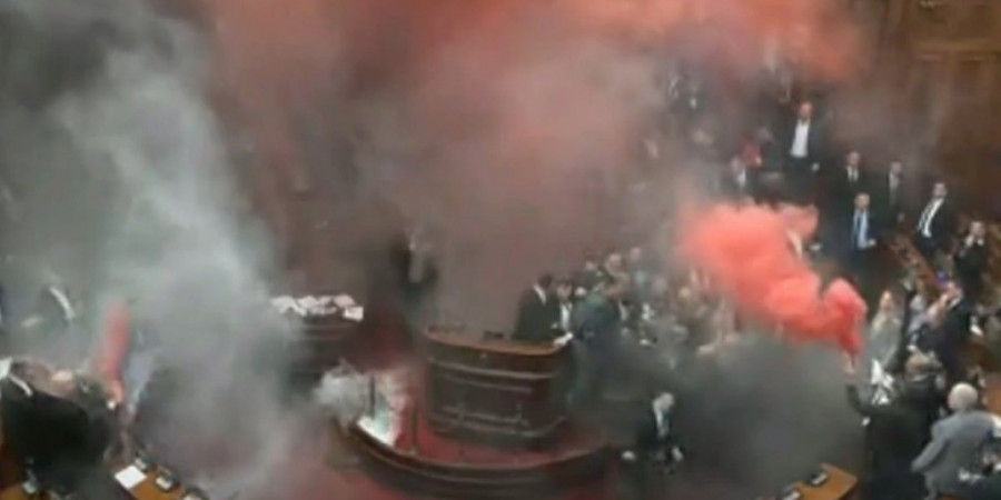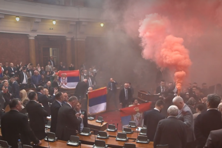 Poslanici opozicije su u sali zapali baklje i bacili suzavac.