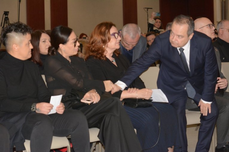 Ministar unutrašnjih poslova i potpredsednik Vlade Srbije Ivica Dačić, zajedno sam premijerom Milošem Vučevićem, pruža podršku porodici preminulog direktora "Granda" Saše Popovića.