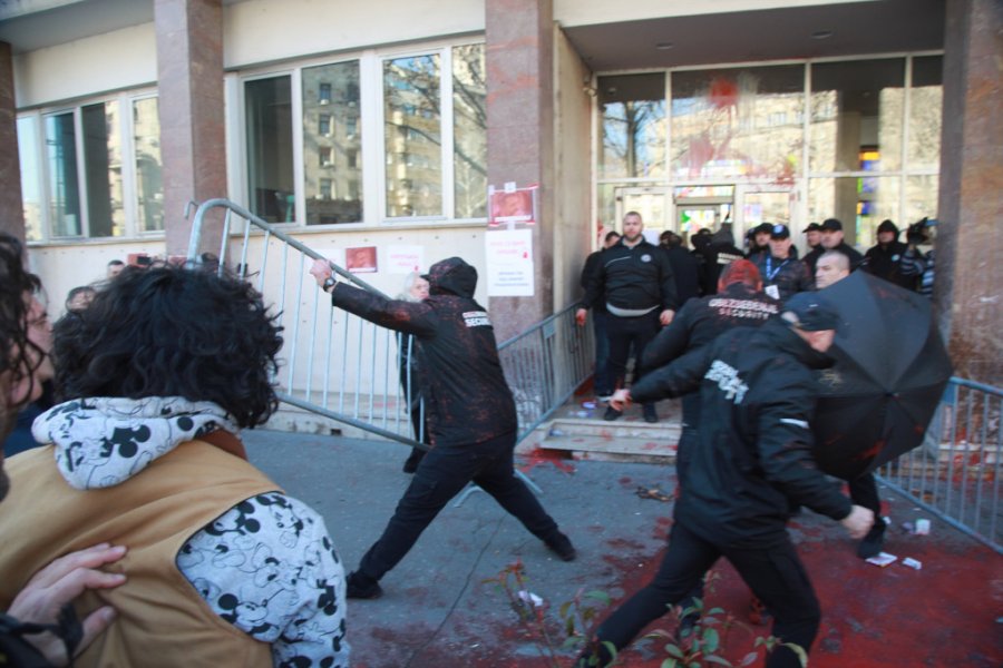 Do okršaja građana i policije došlo je nakon što su odbornici napustili salu. U jednom trenutku došlo je do ozbiljnog fizičkog obračuna, a pripadnici obezbeđenja zasuti su crvenom farbom.