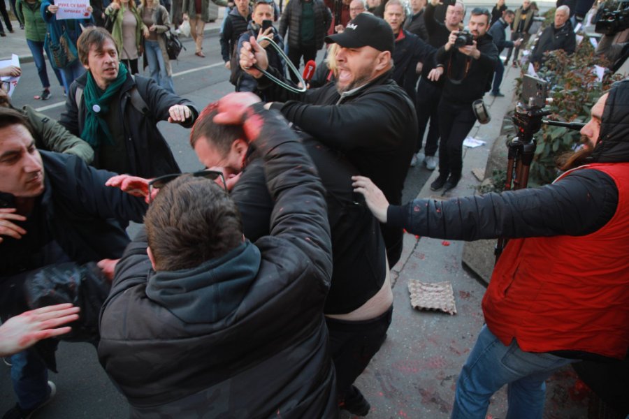 Naime, okupljeni građani koji su pristalice opozicije demonstrirali su stravično nasilje nad obezbeđenjem i novinarima kada su nasrnuli na njih.