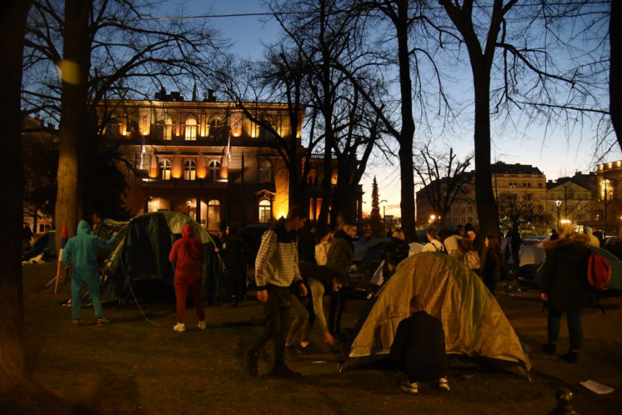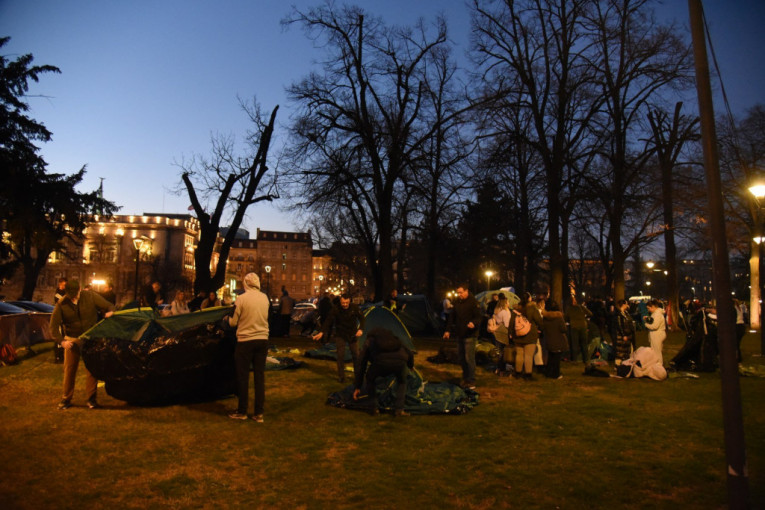 Studenti koji žele da studirtaju okupljaju se ispred Predsedništva. Kako javljaju reporteri "Novosti" oni su doneli šatore i planiraju da ostanu ispred Predsedništva celu noć.