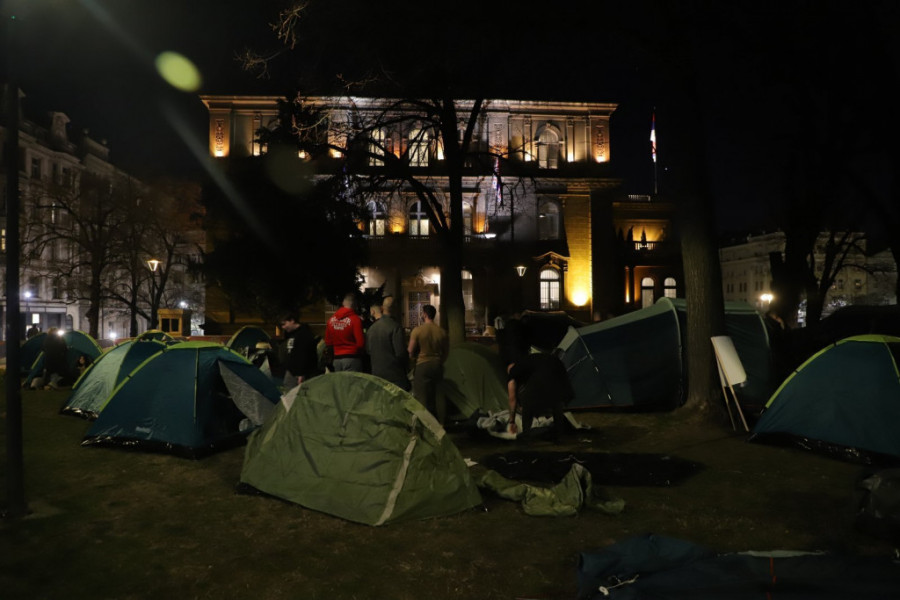 Studenti koji žele da studiraju okupili su se ove večeri ispred predsedništva. Planiraju da ostanu tokom noći te su doneli šatore.