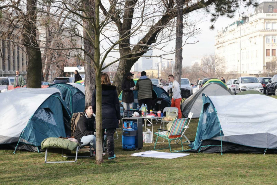 Proveli su mirnu noć, dolazili su građani koji su im donosili hranu i razne druge stvari, i dalje vlada dobro raspoloženje, a prema rečima našeg reportera, studenti su zadovoljni kako je prošla tek prva noć pored Predsedništva u Pionirskom parku.