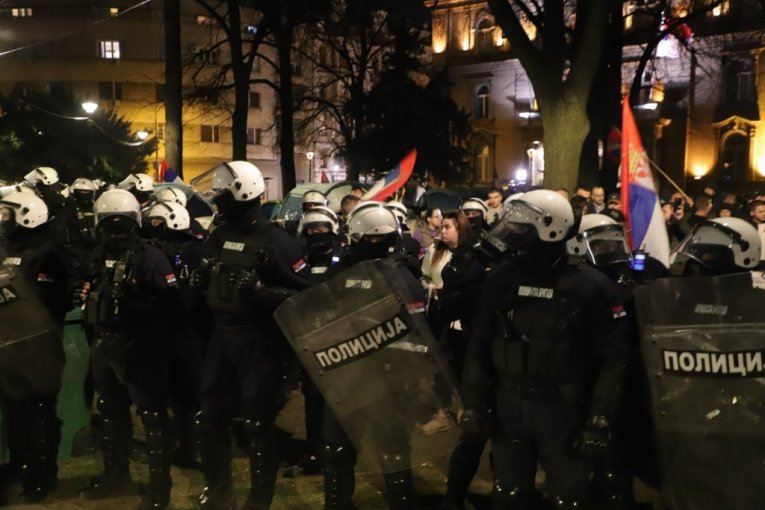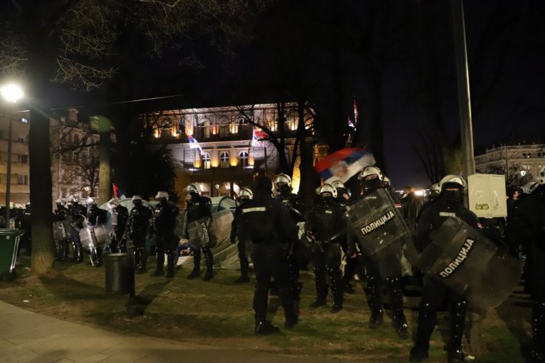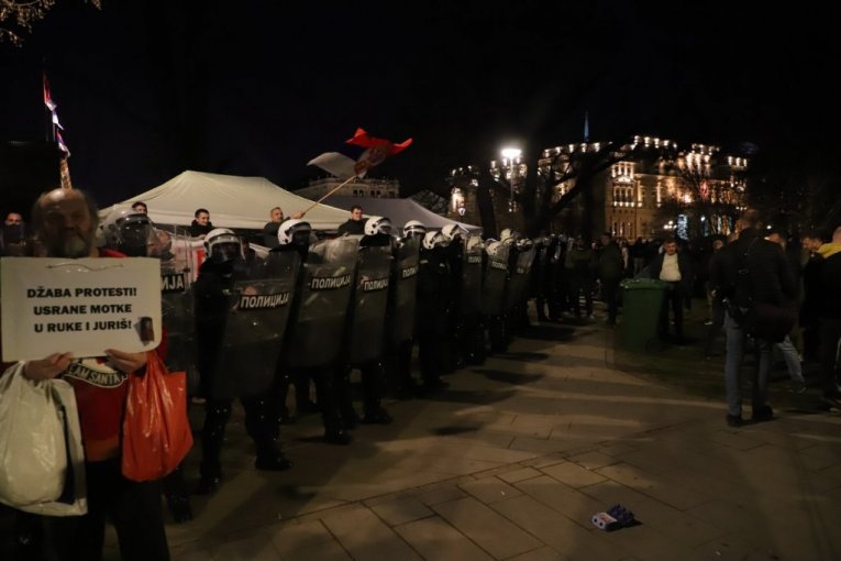 Ispred Predsedništva Srbije prisutan je i veliki broj kordona policije, kako bi sprečili incidente.