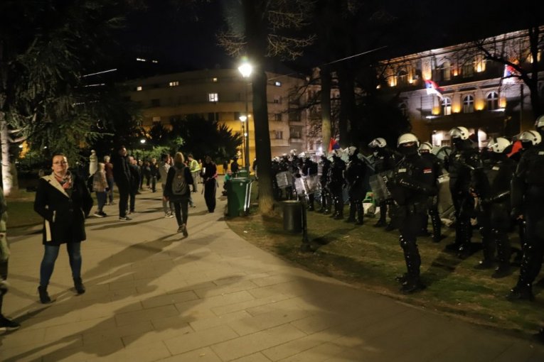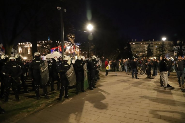 Studenti u blokadi takođe nisu dozvoli studentima koji žele da pohađaju nastavu da održe konferenciju za novinare koju su bili zakazali za 20 časova. U Pionirski park su stigli pripadnici policije i sada je između dve grupe studenata kordon policije. Studenti koji žele da pohađaju nastavu od sinoć su u Pionirskom parku i traže početak nastave na fakultetima i drugim visokoškolskim ustanovama do 10. marta, odnosno najkasnije do 17. marta.