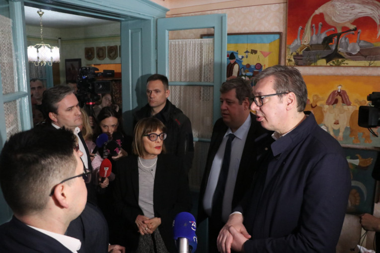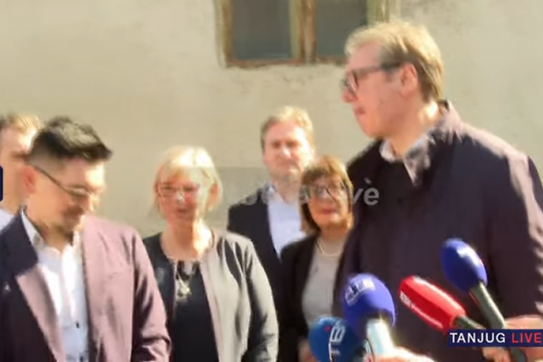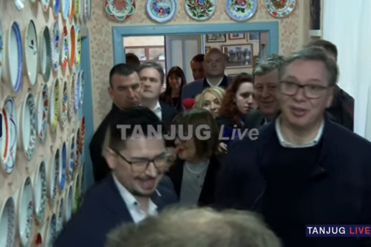 - Idi kući, sve ti je ovo narandžasto i žuto. Uhvatićemo barabu danas, našli smo ga na snimku. Idi kući - rekao je predsednik Vučić ministru Selakoviću koji sa njim obilazi Spomen-kuću.