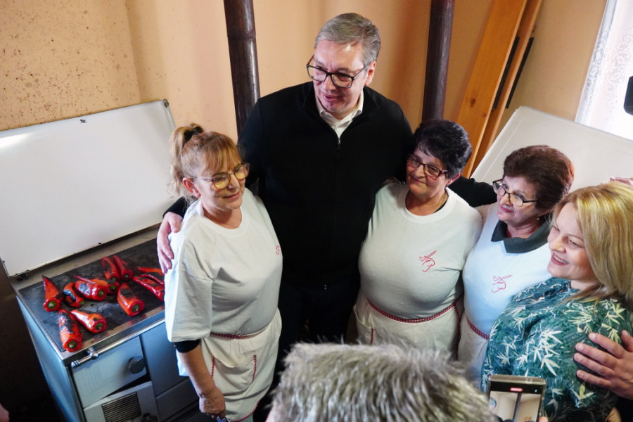 Radići se bave proizvodnjom domaćeg ajvara a i predsednik je promešao ajvar u velikoj šerpi pa se interesovao zašto je važno da se kuva i upržava baš na smederevcu.