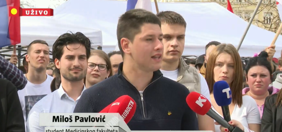 - Okupili smo se jer je danas 10. mart, a naši zahtevi nisu ispunjeni. Rekli smo da, ukoliko naši zahtevi ne budu ispunjeni do 10. marta, ići ćemo od institucije do institucije i tražimo odgovor. Sastavili smo jedno pismo rektorima univerziteta, dekanima i direktorima drugih visokoškolskih ustanova koje su u blokadi. Mi studenti koji želimo da učimo obraćamo se sa zahtevom da nam odgovorite na pitanja koja će predodrediti našu budućnost. Molimo vas da nam dostavite informacije o tome kada će redovna nastava biti ponovo pokrenuta, kao i precizan plan nadoknade u odnosu na taj datum. S obzirom da je i dalje na snazi nazovi blokada naših fakulteta, a do sada nismo dobili nijednu informaciju o tome kada možemo da očekujemo ponovan početak studiranja, molimo vas da nam dostavite informaciju koji datum je od strane rukovodstava fakulteta procenjen kao krajnji rok za početak nastave kako bi se mogao napraviti adekvatan plan nadoknade. Dakle, koji je krajnji rok za pokretanje nastave, a kojim se može garantovati da će studenti dobiti nadoknadu propuštenog, bez redukcije - kazao je Miloš Pavlović.