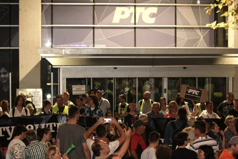 Trenutno se ispred zgrade RTS nalaze okupljeni studenti kojih je u ovom trenutku manje nego što je to bio slučaj sinoć.