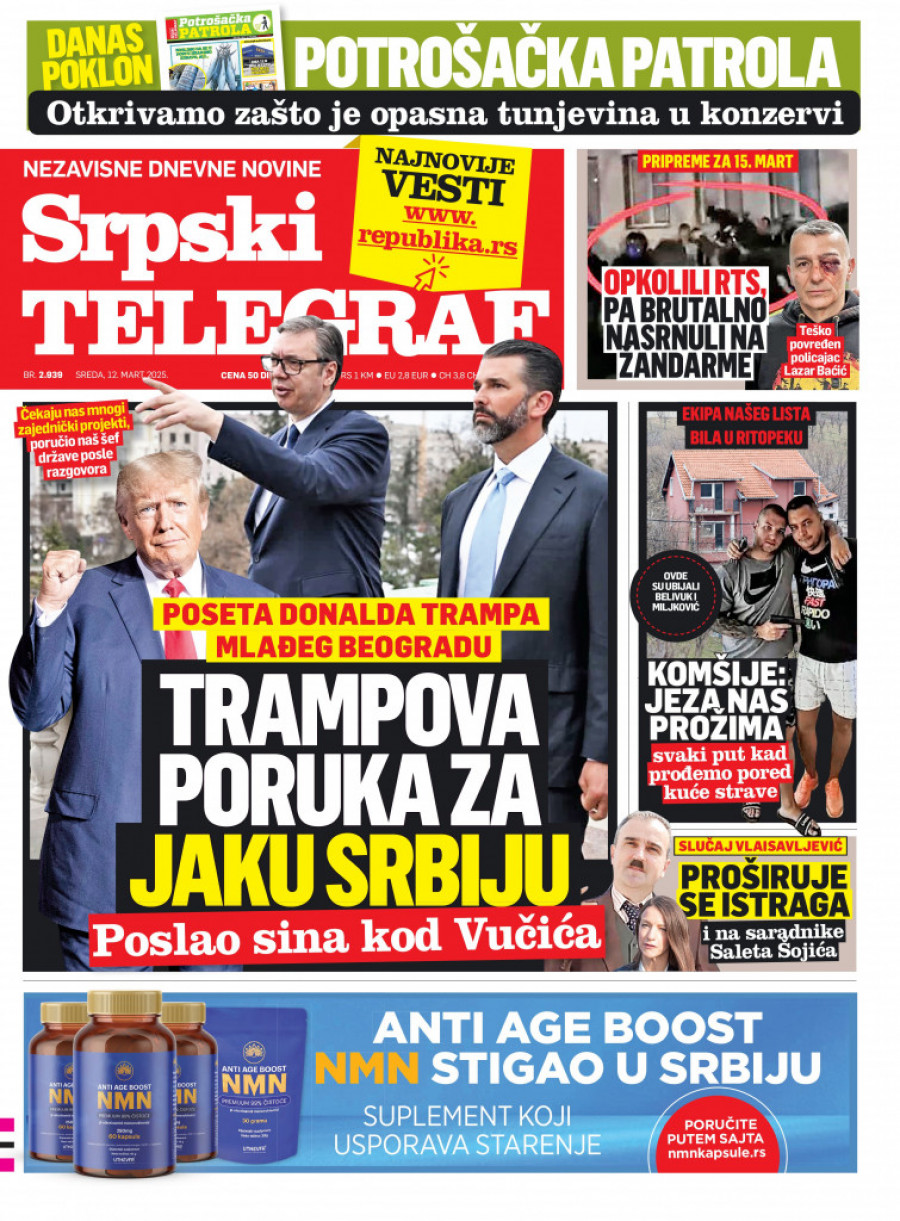Srpski telegraf u izdanju za utorak 12. mart 2025. donosi pregršt novih i zanimljivih priča!