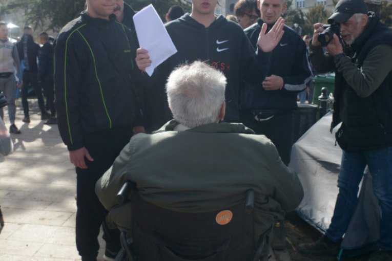 Današnja scena potpuno je raznežila sve prisutne, kada je vremešni deka u invalidskim kolicima Perica Grbić, došao do parka kako bi upoznao i popričao sa studentima.
