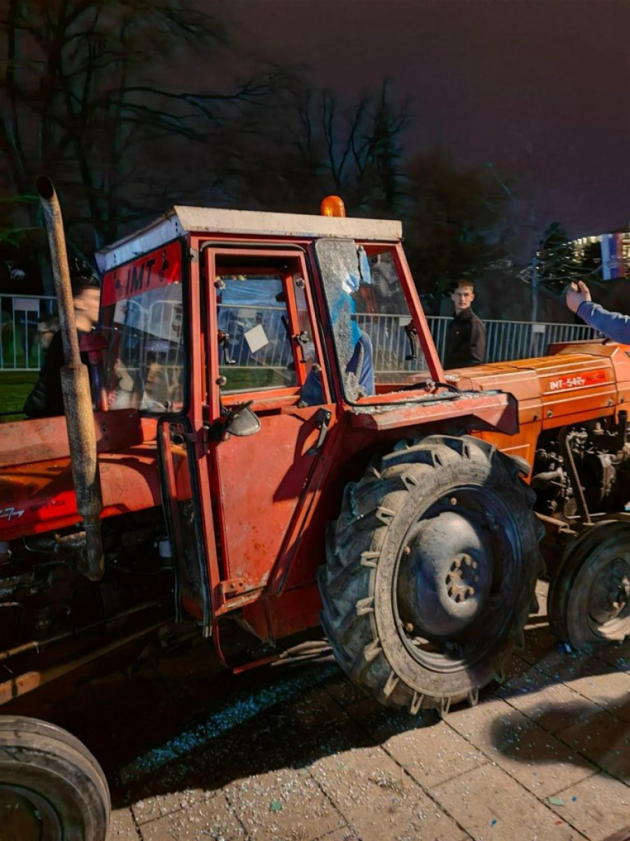 Istrajni budući akademci u svojim namerama da se vrate u klupe pokušavaju da obavljaju svoje dnevne aktivnosti, međutim kako se vidi na na slikama i snimcima koje je Kurir objavio vidi se da se okupila nekolicina ljudi koji drže metalni predmet kojim su bušili gume na traktorima i lomili stakla. Po svemu sudeći, najverovatnije je u pitanju nož, a sve u nameri da provociraju studente koji žele da uče i sprovode nasilje.