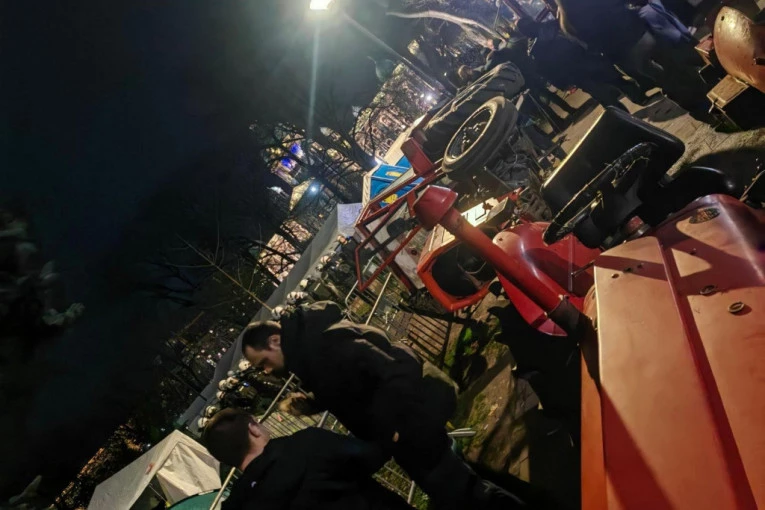 - Kada se pogleda Pionirski park, i da, tačno je, postoji jako veliki broj kolega iz Novog Sada i ovim putem želim sve da ih pozdravim. To su naši Novosađani koji su došli ovde da daju podršku ovom našem protestu, da se što pre vratimo na fakultete. Slika koju se šalje, mislim, ljudi ovde pokušavaju da... ali svi ljudi napolju što viču i dobacuju, mahom to i nisu studenti, to su neki... ne znam, ne bih sada se bavio kvalifikacijama, ko su ti ljudi, ali poenta priče je da sa svojim dovikivanjem, psovanjem, vređanjem, uništavanjem tuđe imovine, kad kažem uništavanje tuđe imovine, mislim na gume na traktorima koje su izbušili i ako prođete malo duž ograde oko Pionirskog parka, videćete da studenti stoje na tim traktorima i viču različite parole protiv studenata koji su u samom Pionirskom parku.
