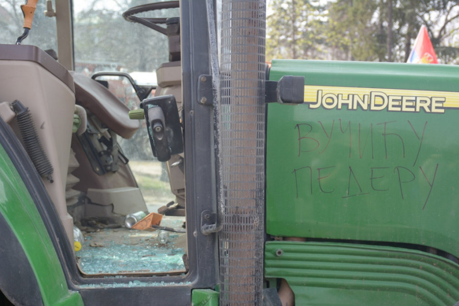 Studenti koji žele da uče noćas su bili na meti napada blokadera, i to topovskim udarima, flašama, kamenicama... Traktori ispred Pionirskog parka su u potpunosti uništeni: gume su isečene, a prozori i vrata potpuno razlupani.