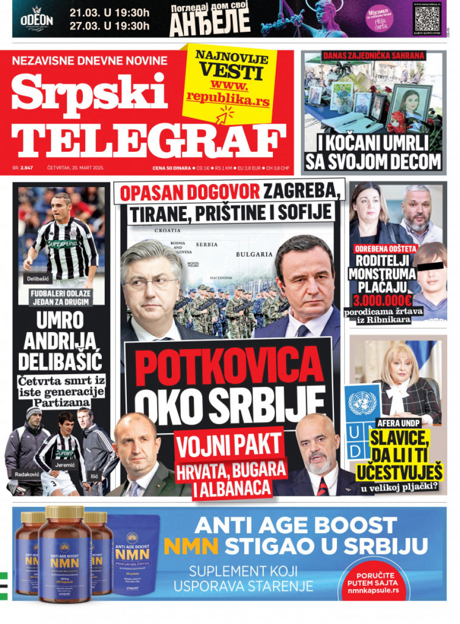 Naslovna strana Srpskog Telegrafa za 20. mart!