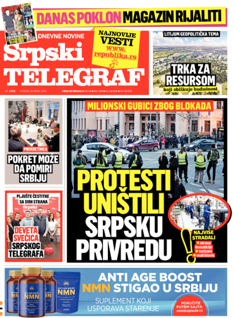Srpski telegraf u izdanju za utorak 25. mart 2025. donosi pregršt novih i zanimljivih priča!